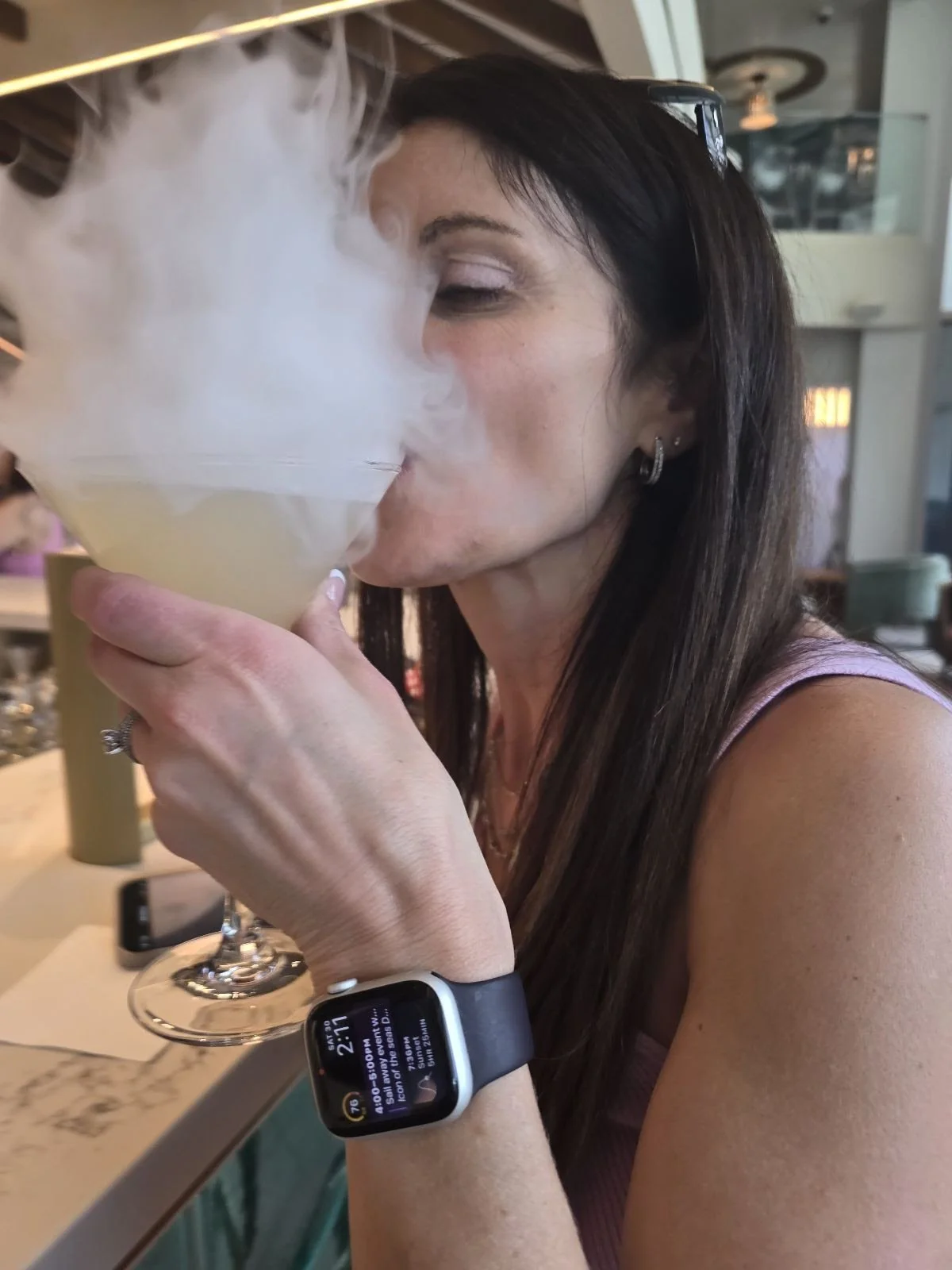 Khalid is our favorite bartender at The Rye and Bean, it is a unique coffee and cocktail bar located in the AquaDome on Royal Caribbean's Icon of the Seas. By day, it serves as a cozy spot for guests to enjoy specialty coffees and teas while soaking in the breathtaking ocean views. As the evening sets in, Rye and Bean transforms into a vibrant bar offering an array of tea- and coffee-infused cocktails, including trendy drinks like espresso martinis. The combination of stunning scenery and thoughtfully crafted beverages makes it a must-visit spot for guests, whether they're looking for a morning pick-me-up or a late-night drink.